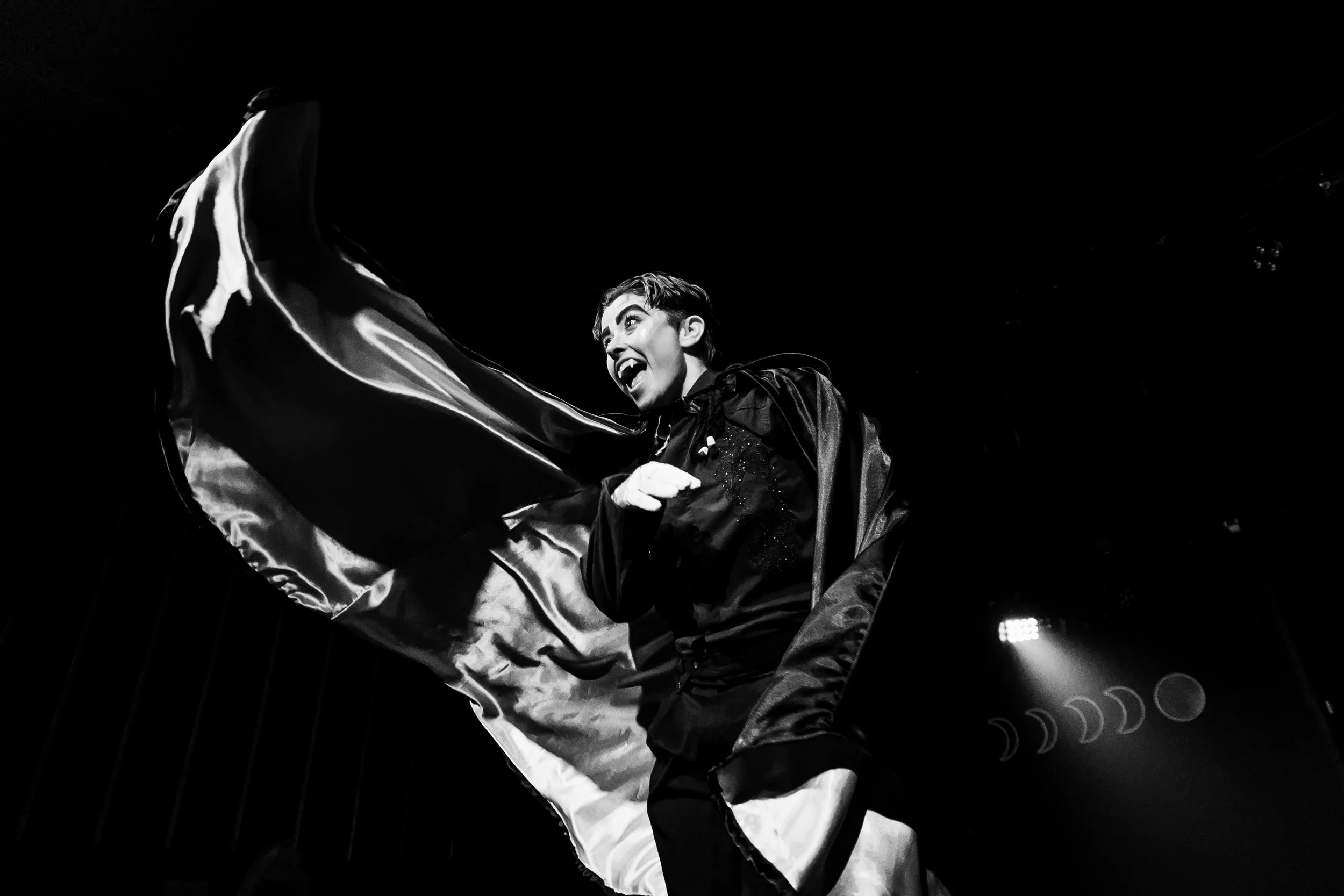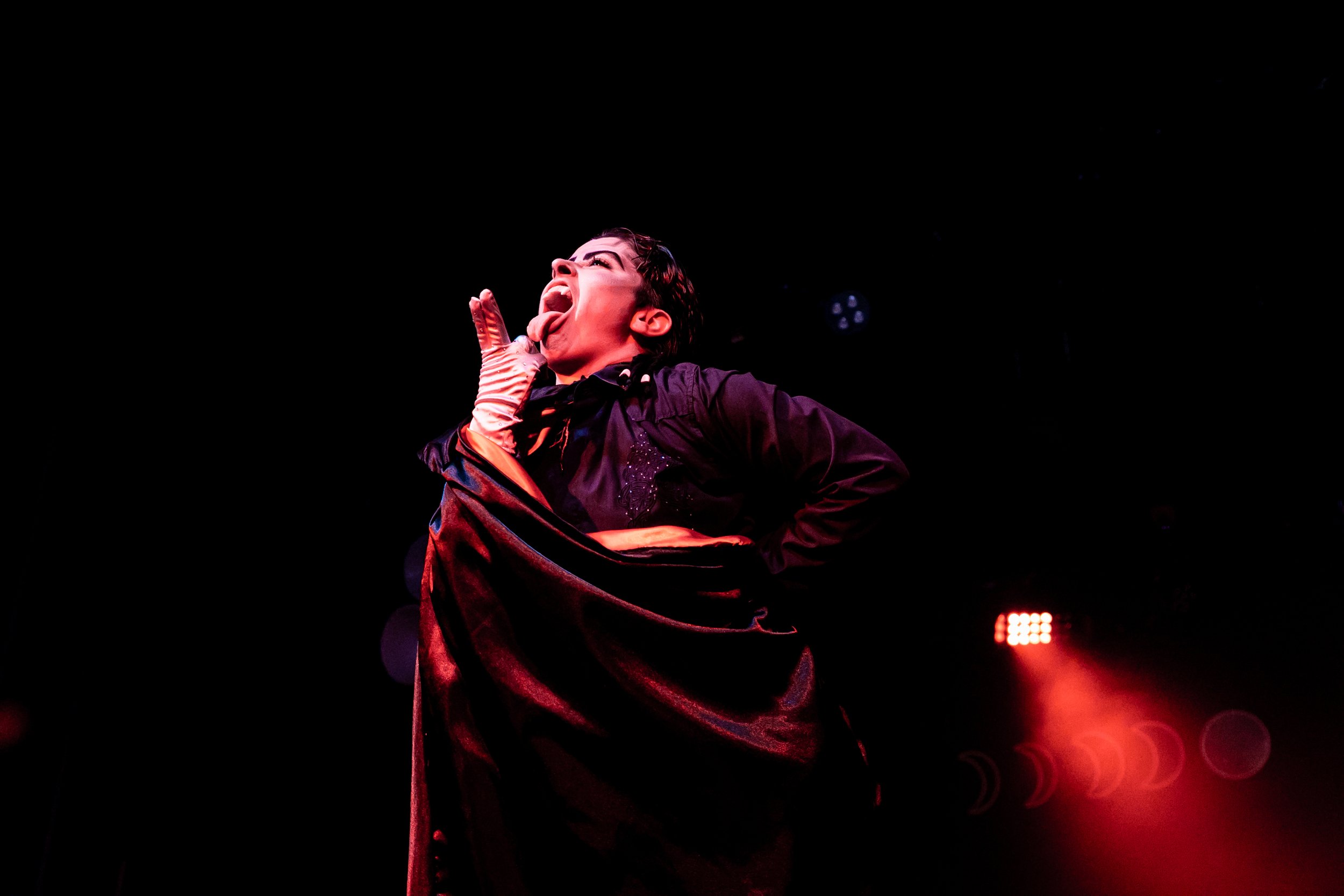 On more than one occasion we have uttered praises to the clown gods, not those that twist balloons at birthday parties, or live in sewers but those who study human behaviour and interaction and work on how to portray this on stage in ways that feel absurd yet so intrinsically linked to our shared humanity. Pip is one such clown. There is a level of discipline, knowledge, care and generosity that sits behind the performances of this tiny drag king. Captivating feels like an understatement to their stage presence. It’s training, its dedication and its continuous practice and its damn good. Curated chaos in the best possible way. If you have seen Pips award winning Vampire act you will know what precision in performance is and its impossible not to loose your breath in laughter. Its not just laughter though, its a play on gender, on pop culture and society at large and an important one to make in these current times. As artists we should look at how we connect with and audience, what are we saying but also are they entertained. When Pip Stachio is on the stage … you damn well be you are.